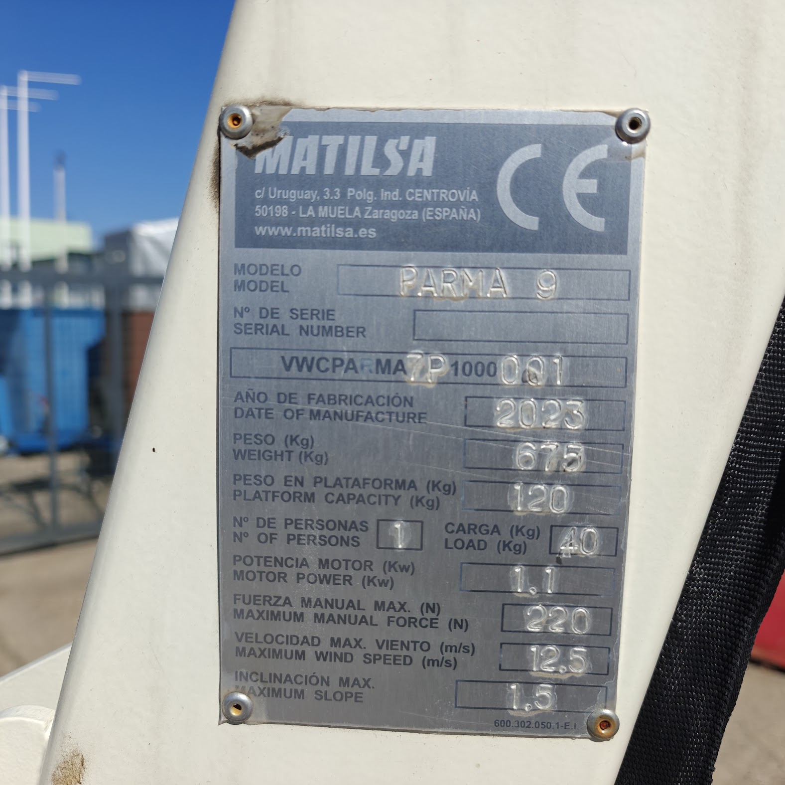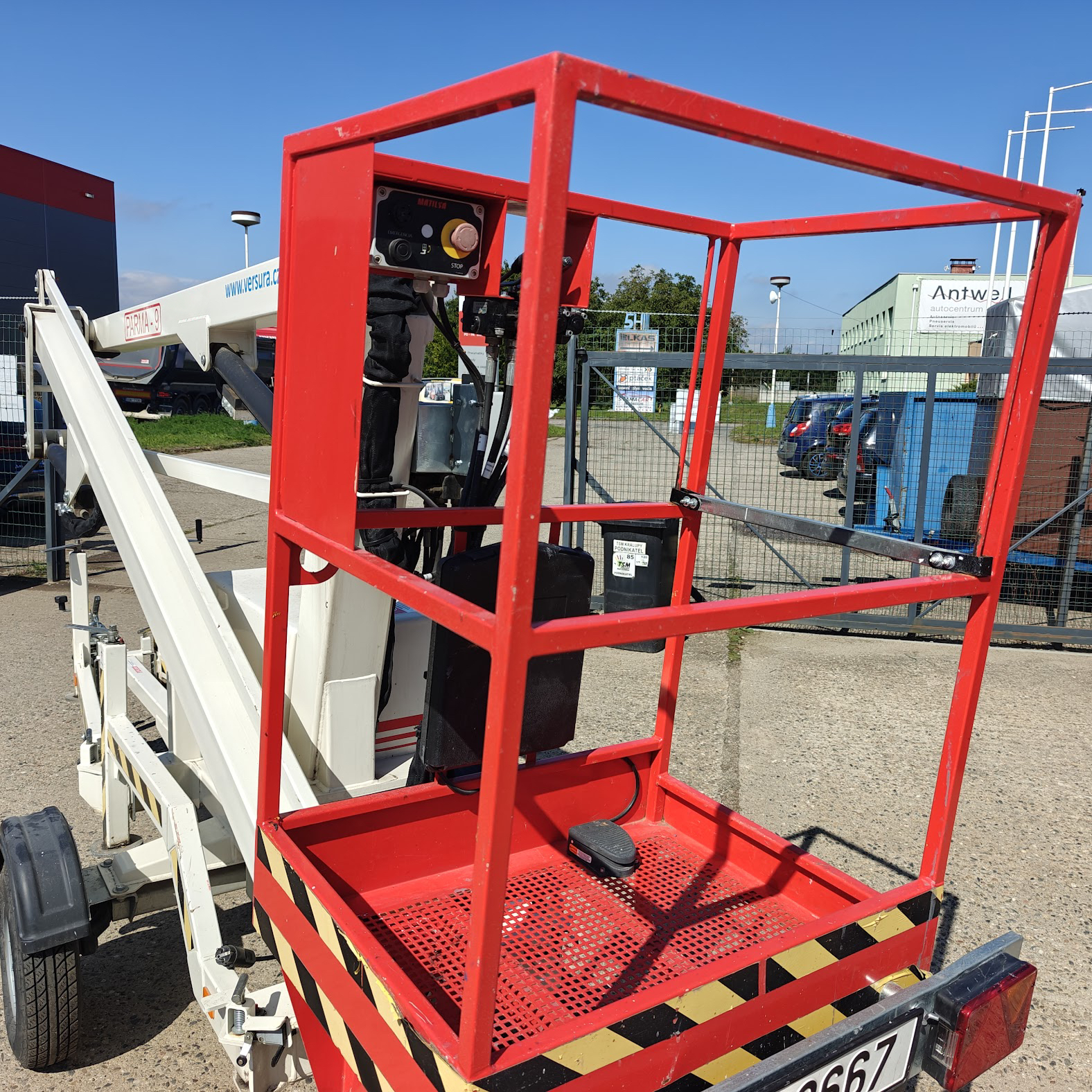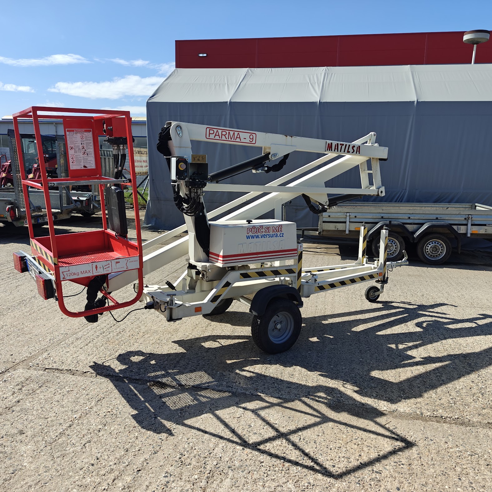 Pracovní plošina Matilsa Parma 9 na přívěsu.