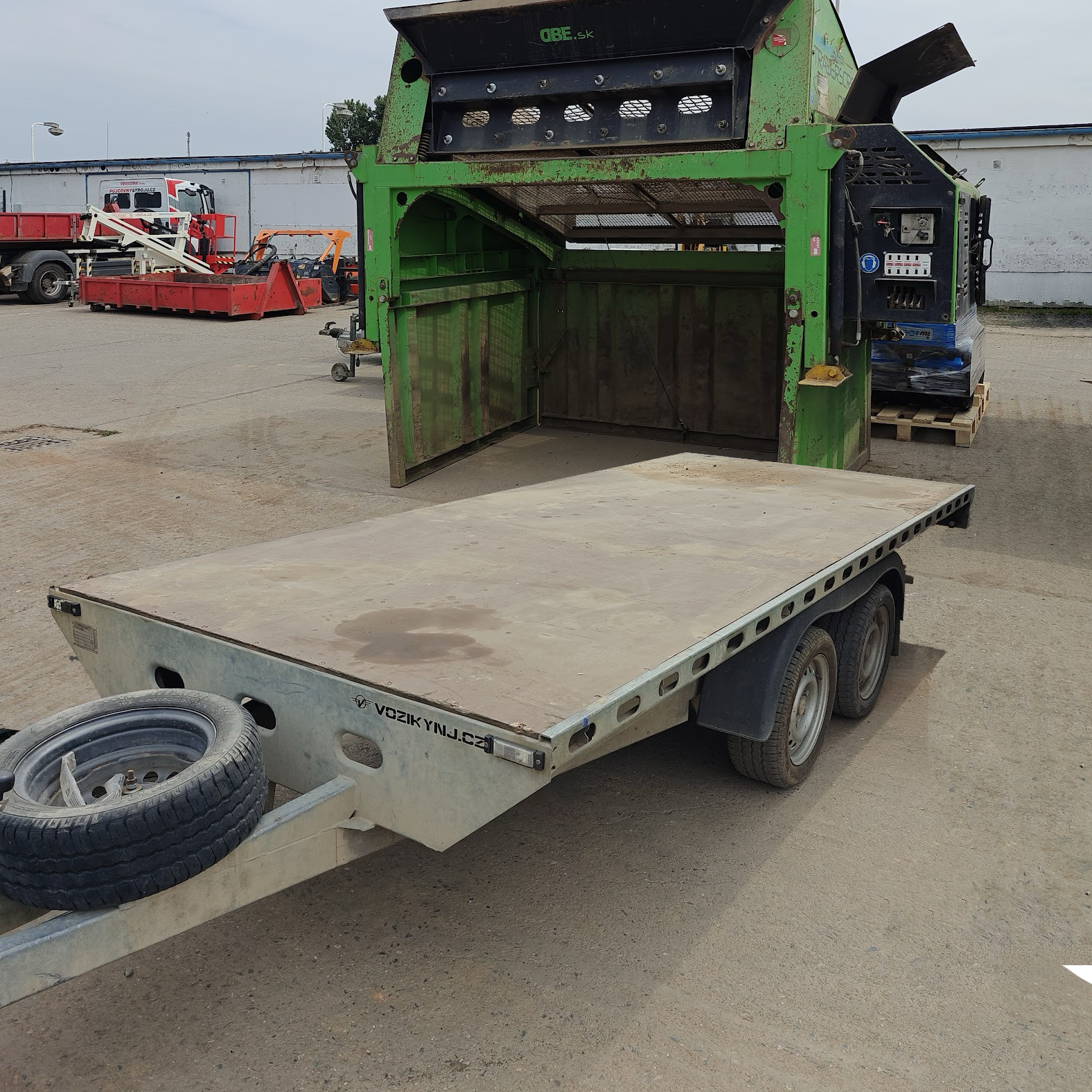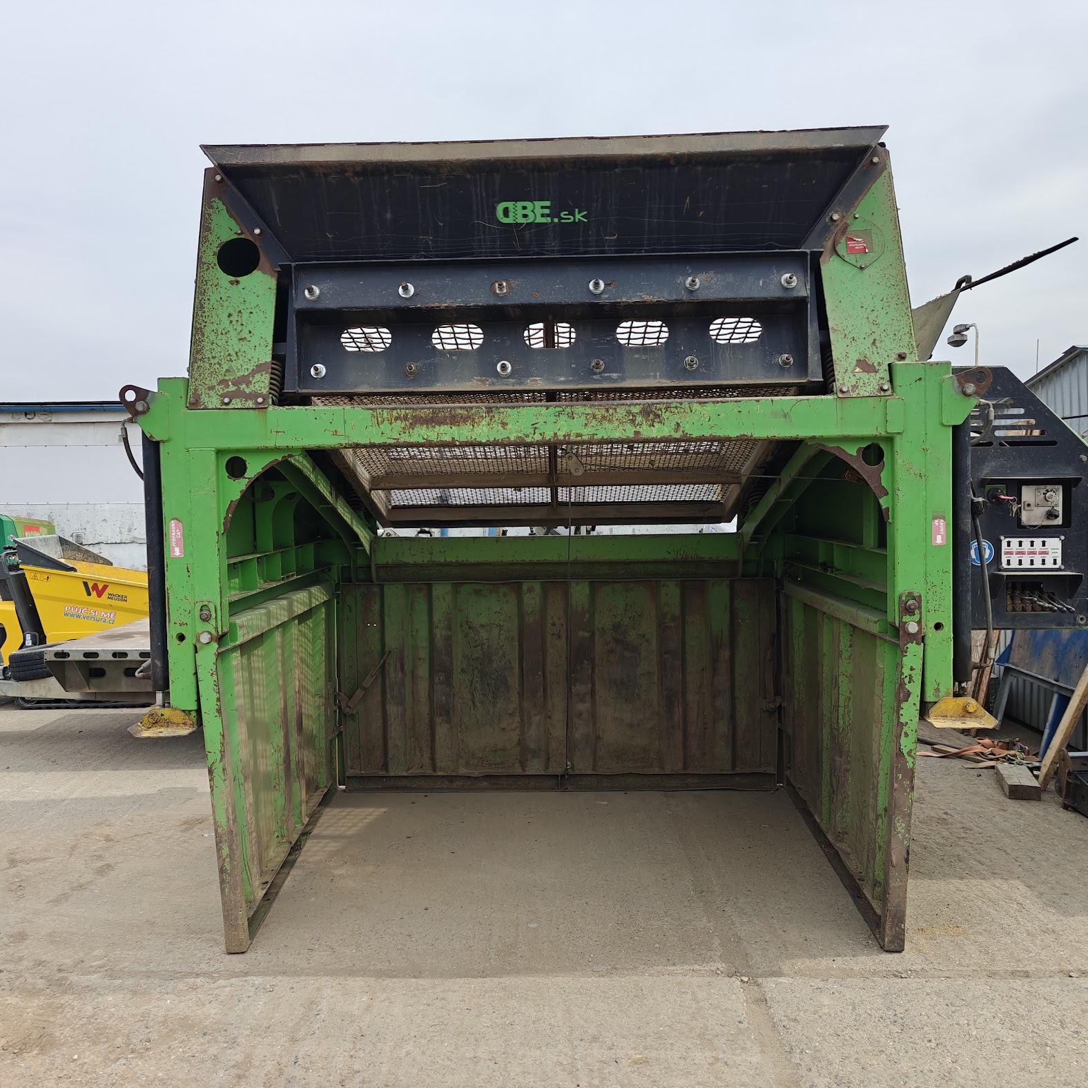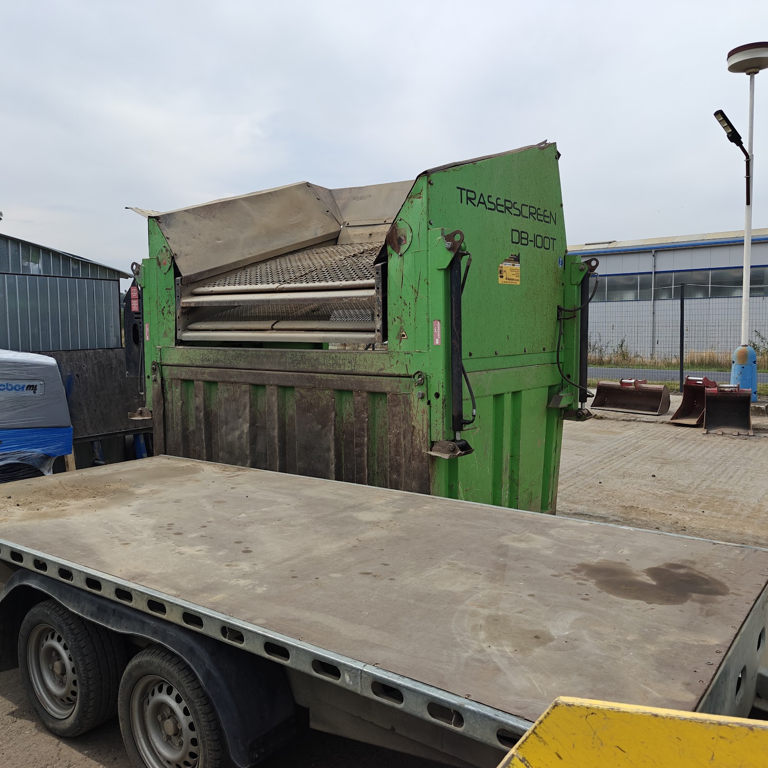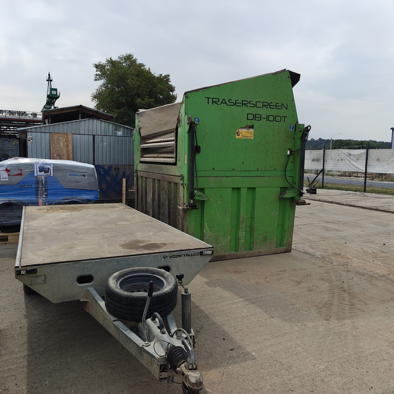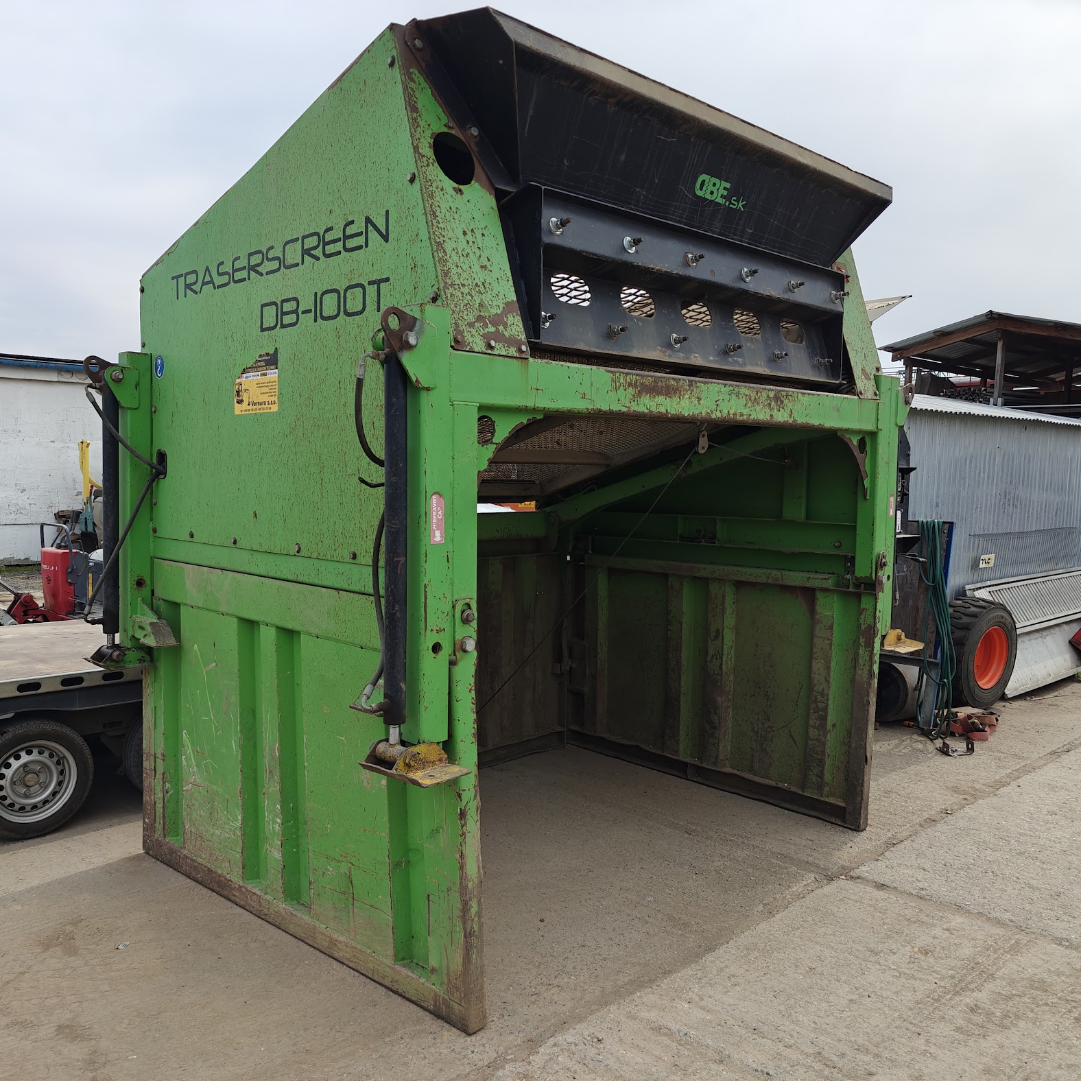V rozloženém stavu slouží a vypadá jako pevná třídička. Rychlé a jednoduché složení, naložení na přívěsný vozík (součástí stroje, vozík přímo na tuto třídičku).